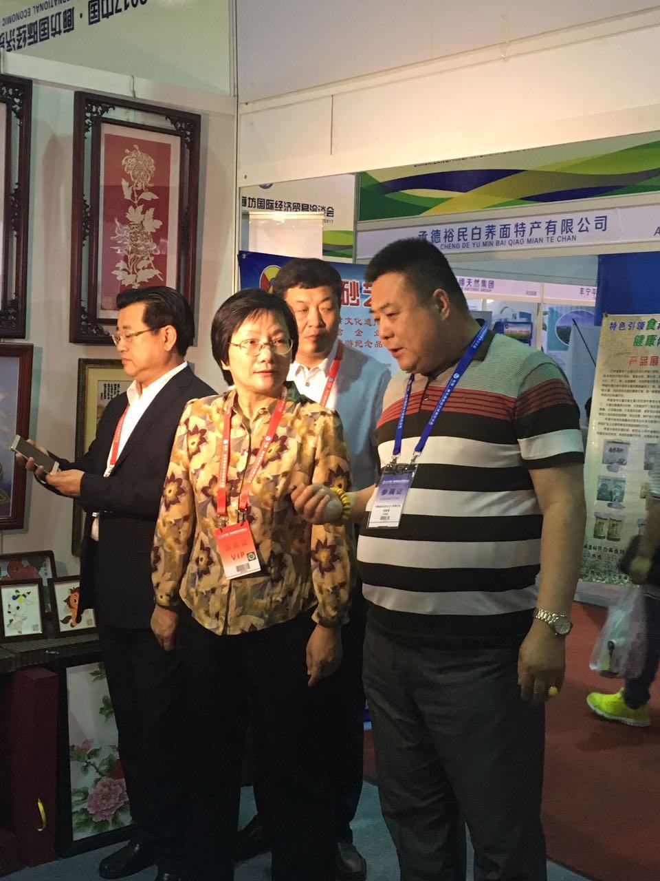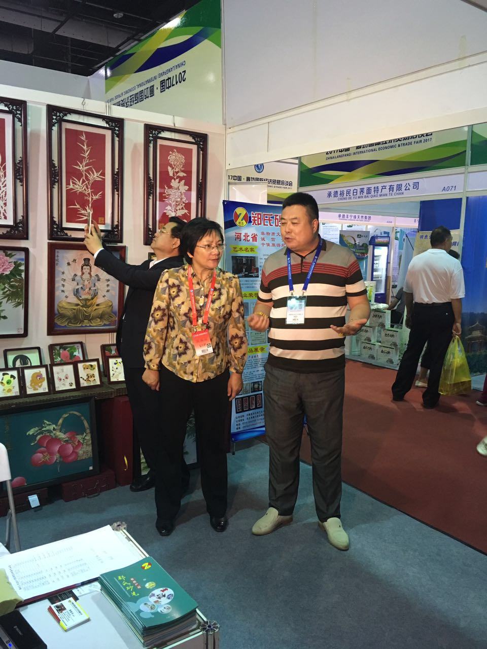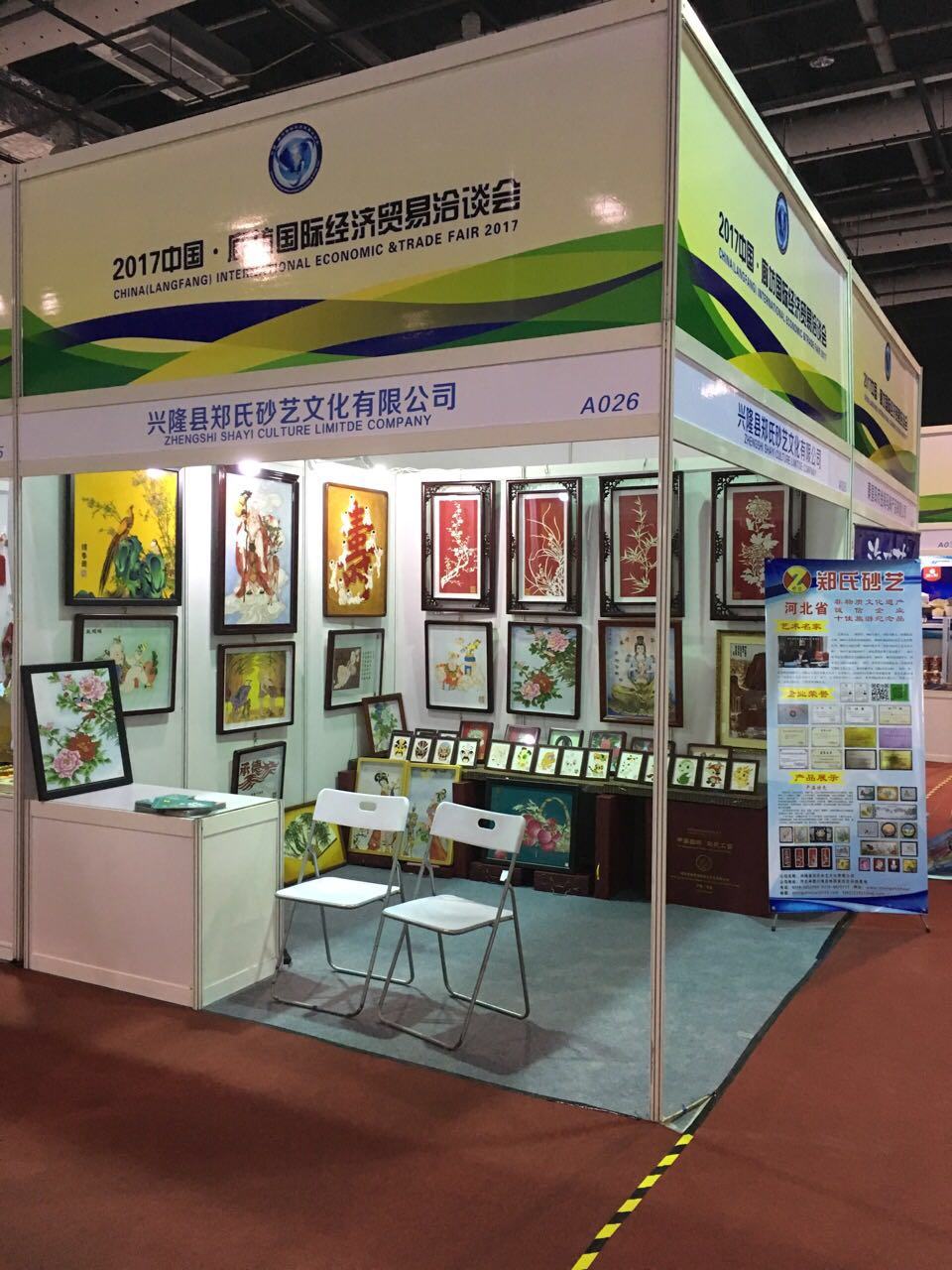 本月18日,我公司參加由河北省商務廳組織的“5.18國際經濟貿易洽談會”。展會為期4天,由多個省份和包括外商在內的近千家企業參與了本次會展。19日下午,承德市市長常麗虹、副市長蘇鐵成、縣商務局局長徐勝濤、副局長張學敏前來視察工作,并參觀了我公司的砂畫作品,對我公司純手工制作的砂畫表示了肯定,并對我公司今后的發展提出了寶貴建議。