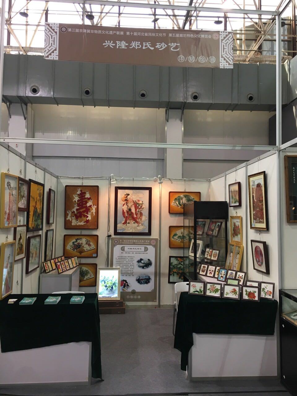 本次展會有來自京津冀各地區的企業,其中河北省有幾十家非遺產品代表企業參加。期間,鄭氏砂藝的砂畫作品得到了省文化廳領導和參展商的認可,同時也參觀了其他企業的手工藝術品,各式各樣的傳統手工藝品美輪美奐,不同的創作手法也讓鄭氏砂藝的參展員工大開眼界。通過本次展會的參觀與學習,讓我們了解到了很多優秀的產品與技術,對今后的創作和公司的發展起到了更深的推進作用。