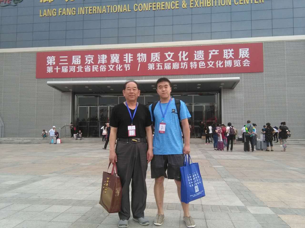 副總經理方永成與職員李晨曦在廊坊國際會展中心B館門前