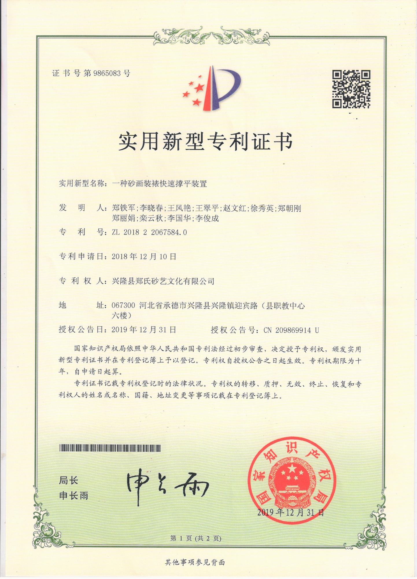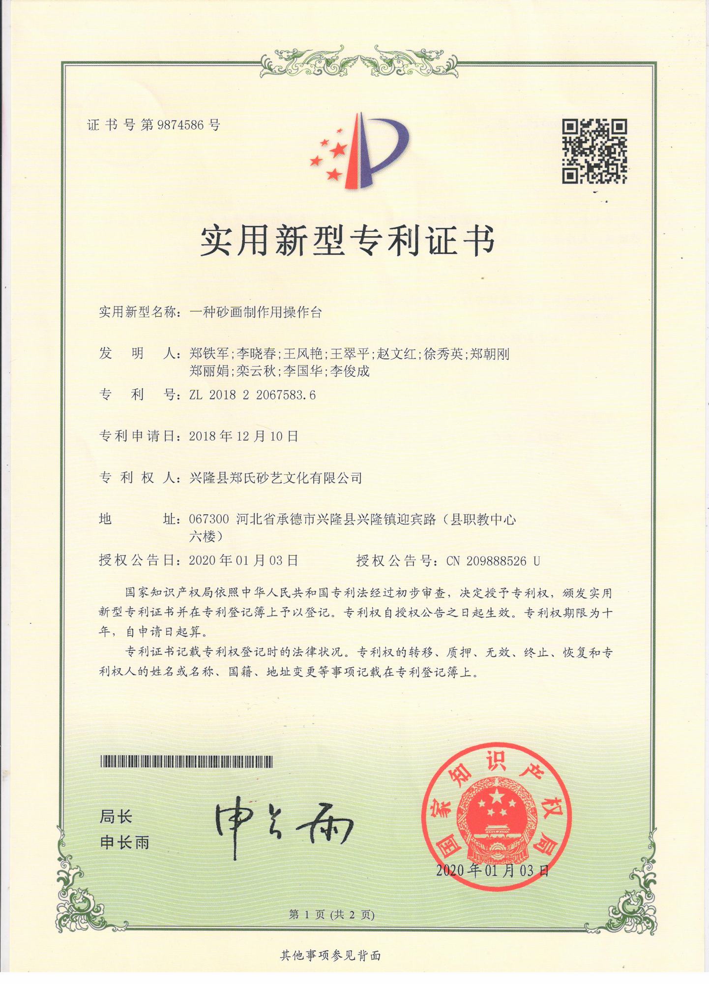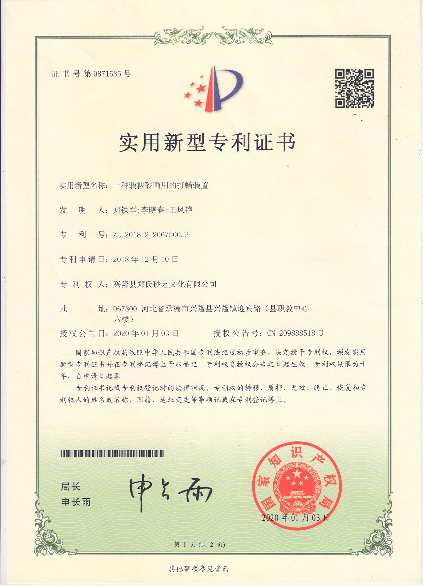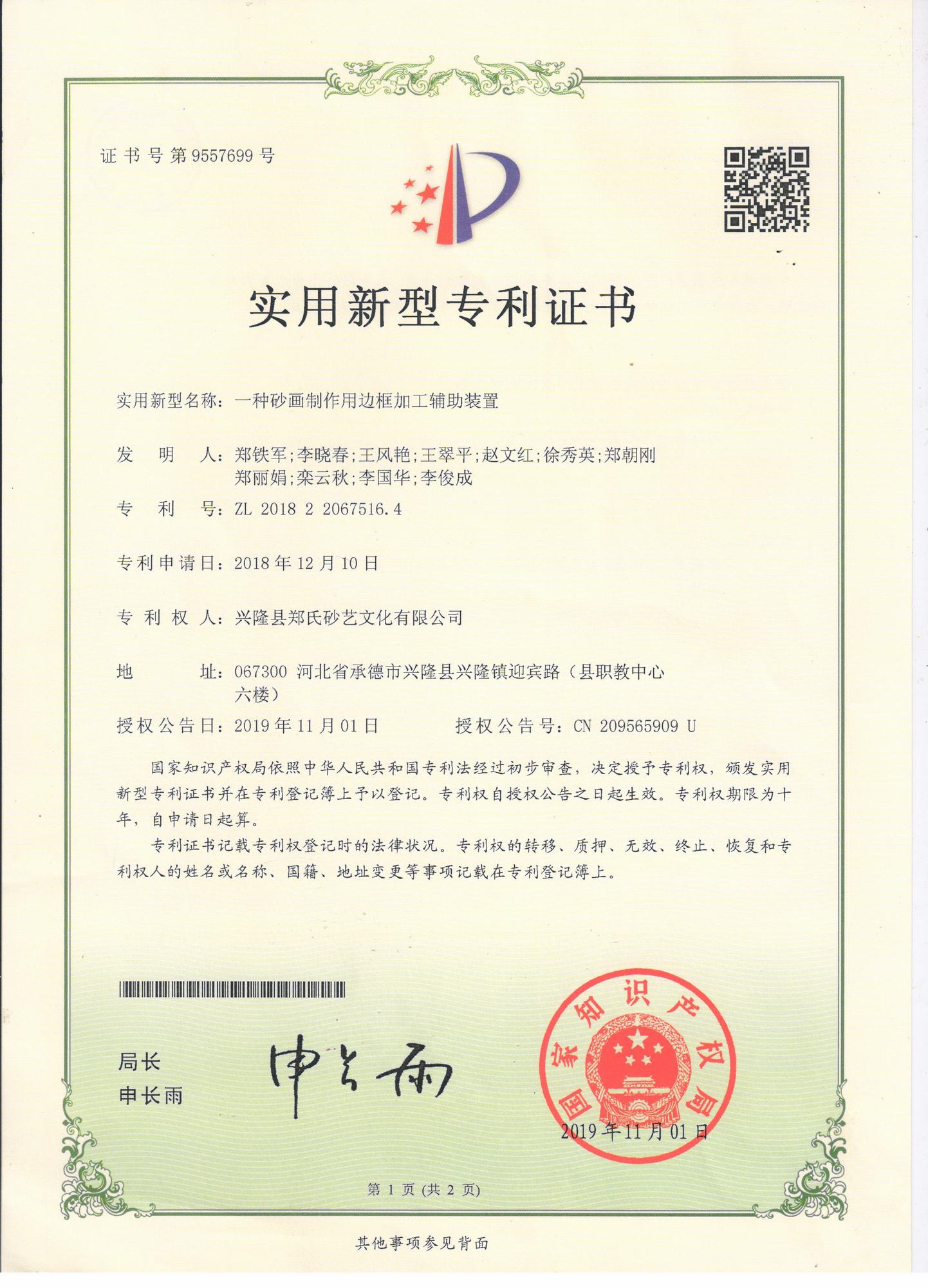 鄭氏砂藝研發中心的自主研發專利獲得國家知識產權局認定通過