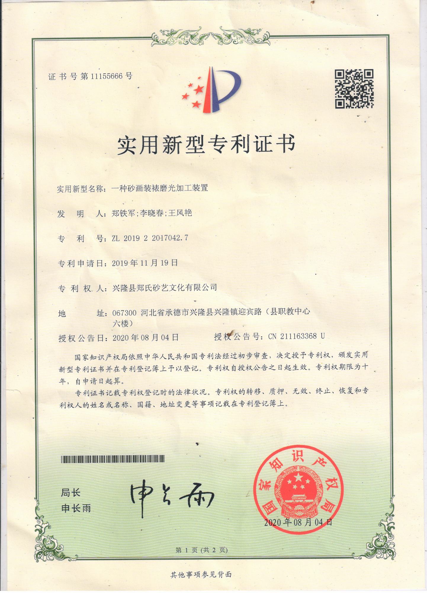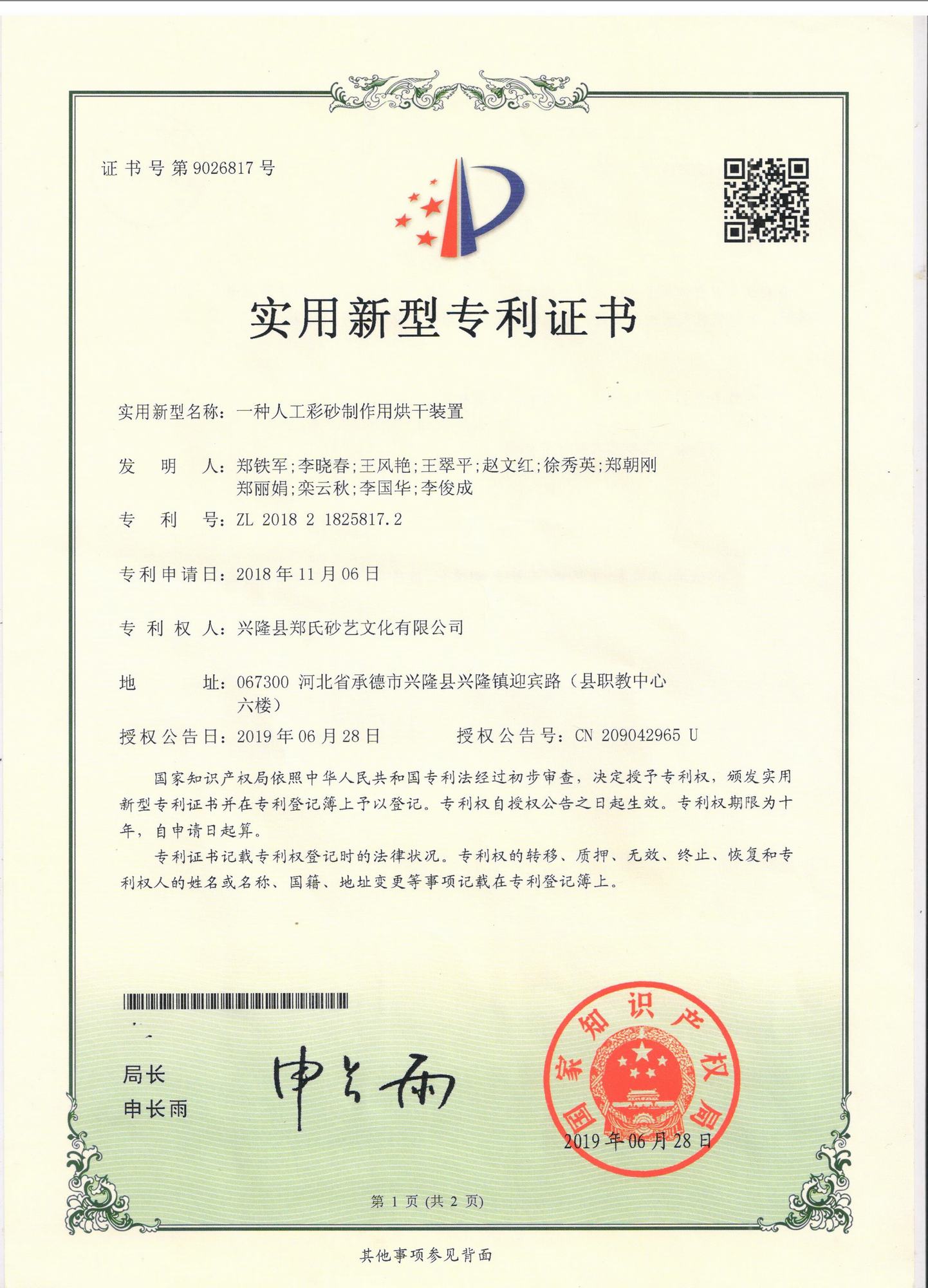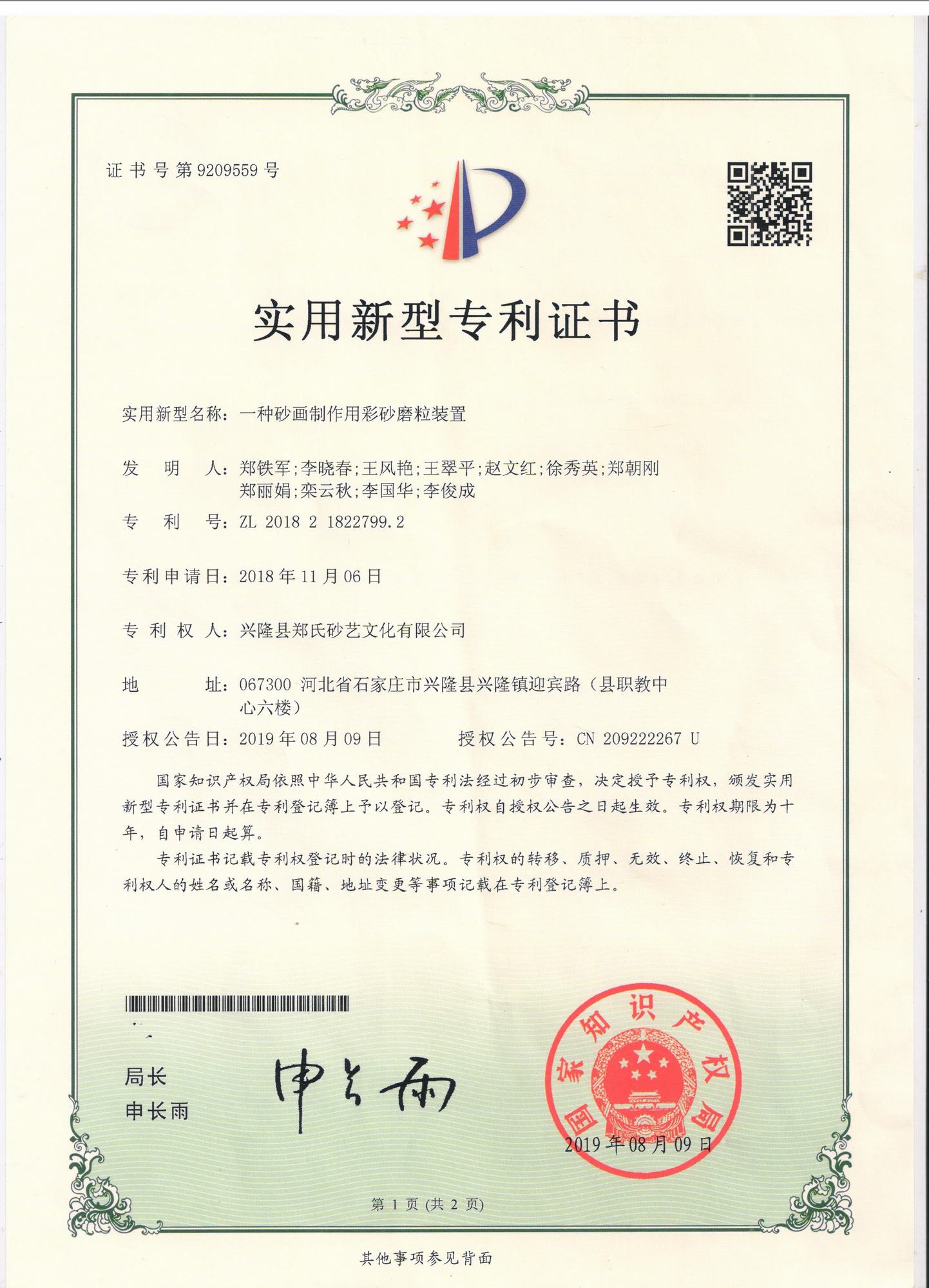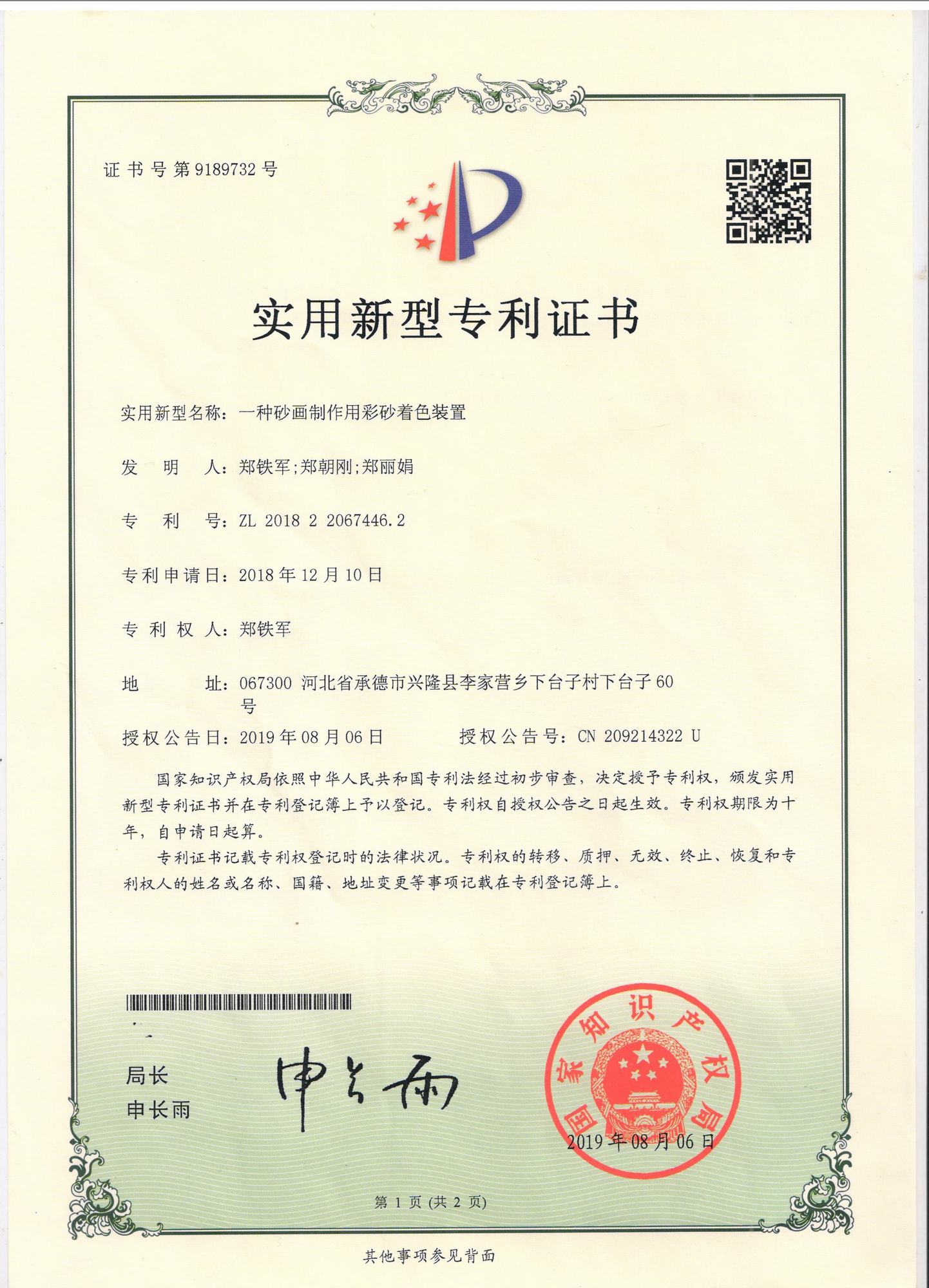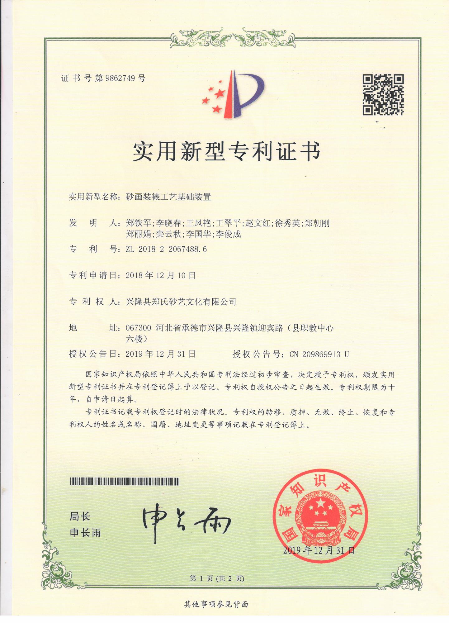鄭氏砂藝研發中心的自主研發專利獲得國家知識產權局認定通過