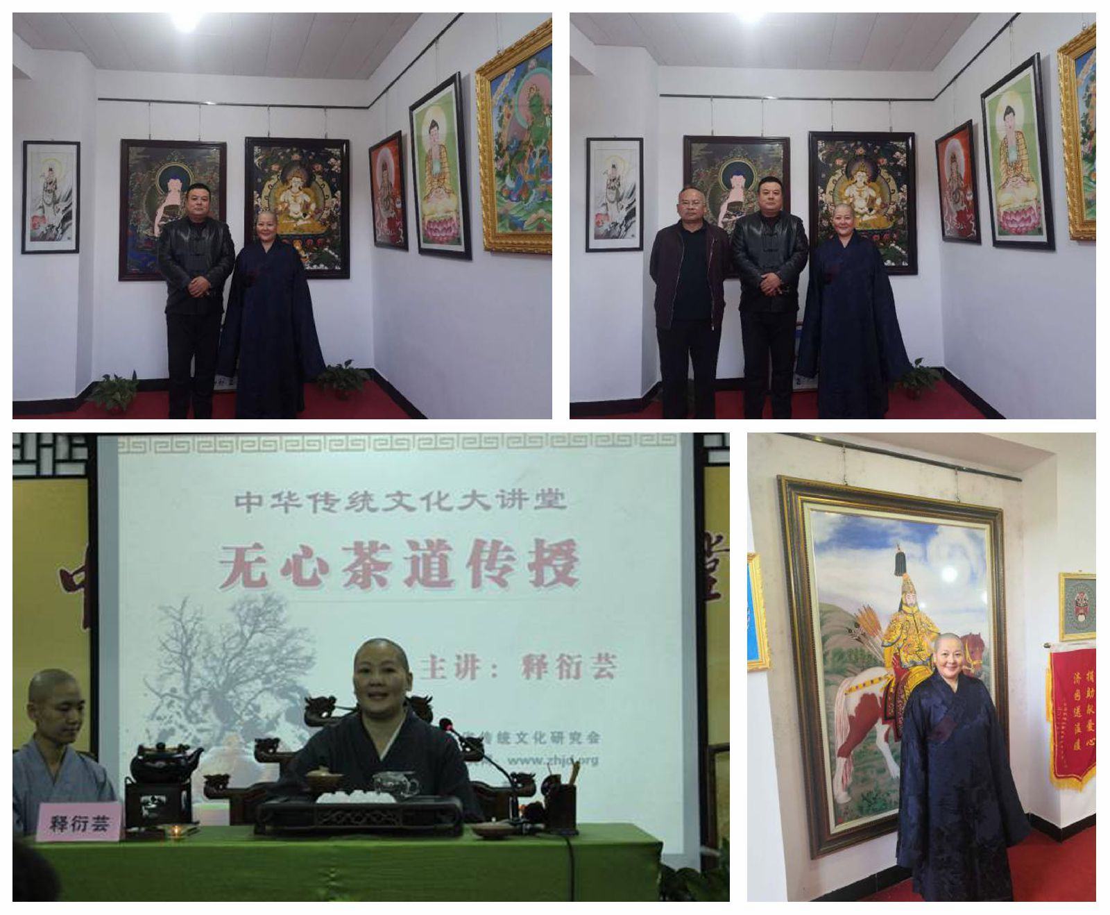 10月13日。興隆縣鄭氏砂藝文化有限公司董事長鄭鐵軍在公司會(huì)見了原縣民族宗教事務(wù)局局長蔣學(xué)金率領(lǐng)的興隆縣隆蕓寺住持、禪茶研修班導(dǎo)師、國際茶藝師釋衍蕓法師等一行。并引導(dǎo)衍蕓法師,觀賞了公司美輪美奐的砂藝作品。釋衍蕓法師為金剛薩埵等十幾幅佛教作品進(jìn)行了灑凈。通過灑凈更加增強(qiáng)了砂藝作品的靈感性和親和力。釋衍蕓法師,90年代遍訪諸山茗茶,研習(xí)各派茶藝,精通各類茶泡制與品鑒,后將禪學(xué)融入茶事,開創(chuàng)“無心禪茶”,借茶修心,益人無數(shù)。釋衍蕓法師是禪茶研修班導(dǎo)師,國際茶藝師,曾多次受邀代表中國到馬來西亞、法國等歐亞國家參加國際茶藝、茶道表演、研討與交流;現(xiàn)受聘于湖北陸羽(茶圣)紀(jì)念館名譽(yù)館長。在佛教界和茶道界享有很高名望。