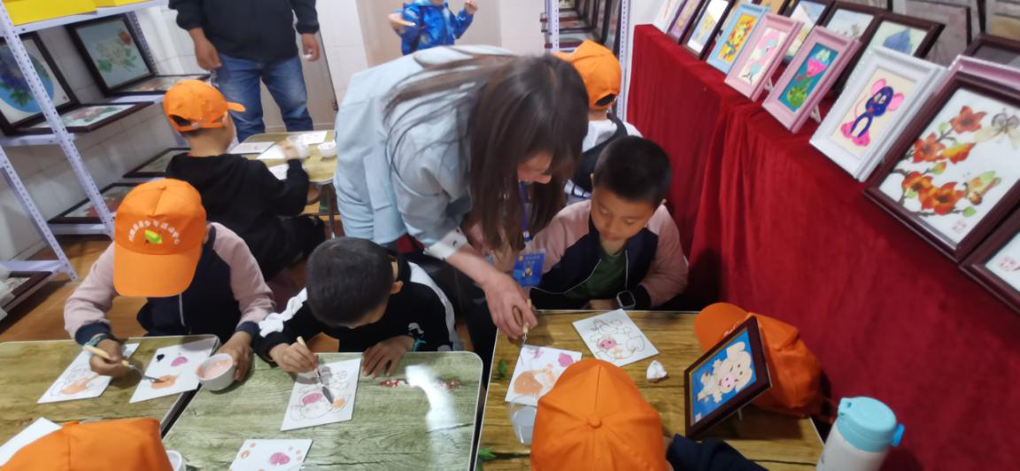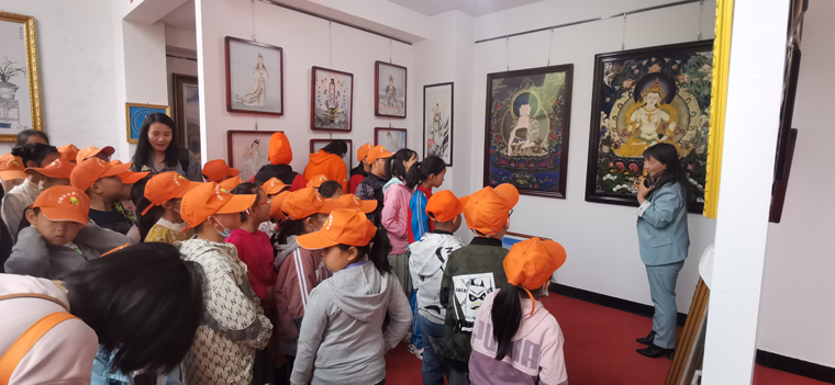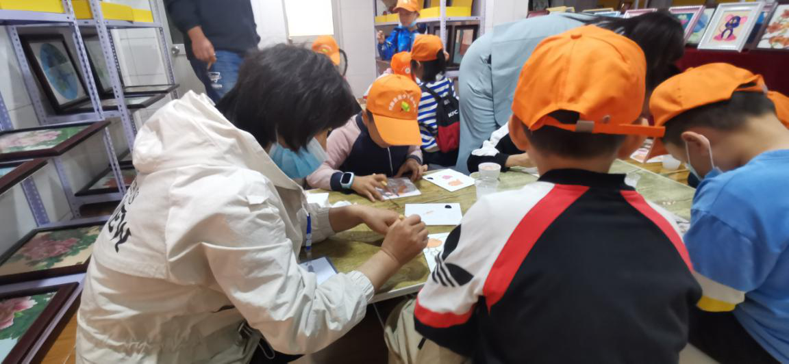參加此次研學(xué)活動(dòng)的師生共計(jì)180余人,小朋友們在我公司講解員的帶領(lǐng)下興致勃勃的參觀了鄭氏砂畫,了解了鄭氏砂藝“非遺”文化的發(fā)展歷程、工藝技術(shù)和傳承意義,觀看了砂畫制作解析視頻,最后進(jìn)行了砂畫的實(shí)際操作。