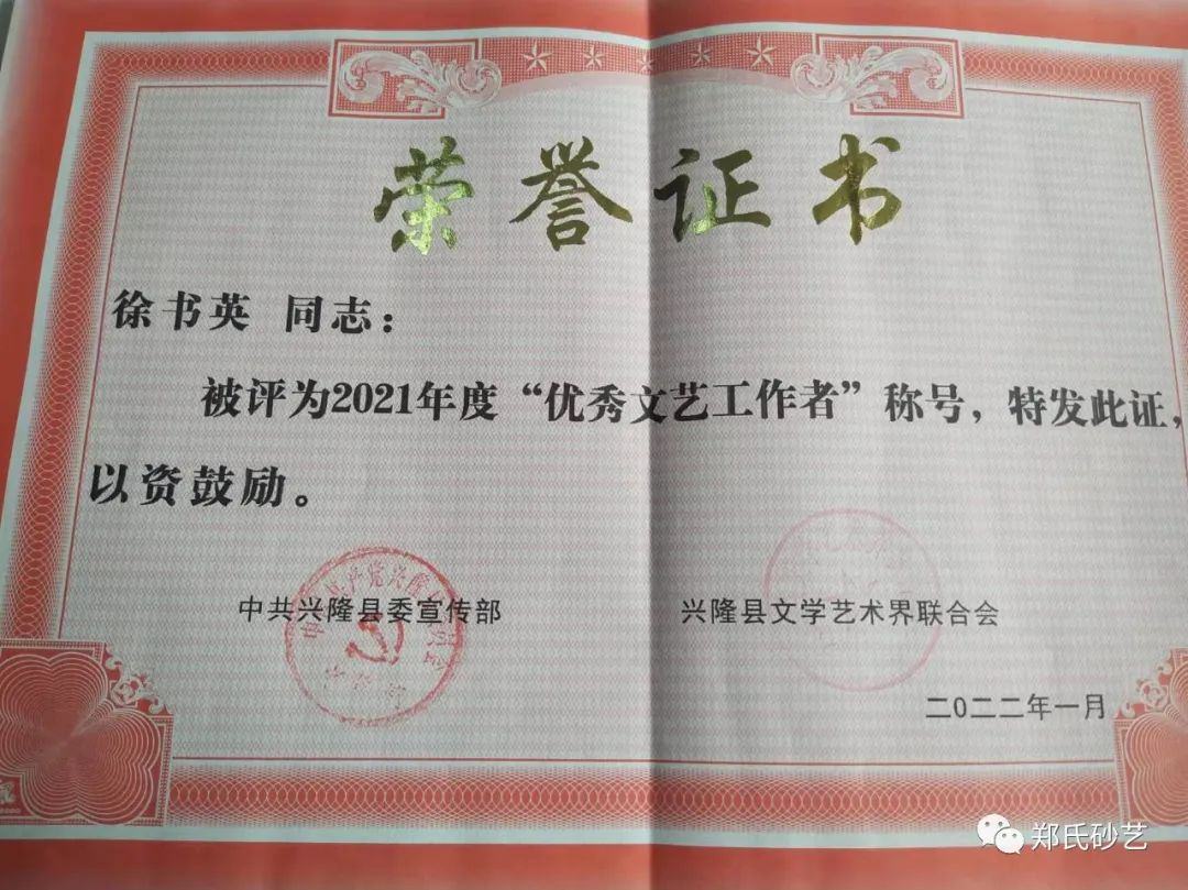 近日,縣委宣傳部、縣文聯(lián)發(fā)表了《關(guān)于表彰2021年度優(yōu)秀文藝家協(xié)會(huì)、優(yōu)秀村級(jí)文聯(lián)、優(yōu)秀企業(yè)文聯(lián)、優(yōu)秀文藝工作者的決定》,文中指出“2021年,在縣委、縣政政府的堅(jiān)強(qiáng)領(lǐng)導(dǎo)下,在市文聯(lián)的直接指導(dǎo)下,全縣廣大文藝工作者,深入學(xué)習(xí)貫徹黨的十九大和習(xí)近平文藝座談會(huì)上的講話(huà)精神,在‘鄉(xiāng)村振興黨旗紅·文藝創(chuàng)新樹(shù)先鋒’和‘文藝名村’建設(shè)實(shí)踐活動(dòng)中,辛勤耕耘,積極創(chuàng)作,服務(wù)人民,為繁榮全縣文藝事業(yè)做出了積極貢獻(xiàn),涌現(xiàn)出了一大批表現(xiàn)突出、成績(jī)優(yōu)異的文藝工作者。”在此次通報(bào)表彰中,鄭氏砂藝董事長(zhǎng)鄭鐵軍、徐書(shū)英、王鳳艷、趙文紅、張國(guó)新、王建寶、張玉紅、張秀榮、王婷共9人被縣委宣傳部和縣文聯(lián)授予2021年度“優(yōu)秀文藝工作者”稱(chēng)號(hào)。企業(yè)將繼續(xù)開(kāi)拓創(chuàng)新,潛心創(chuàng)作,努力發(fā)掘出更多文藝人才,壯大鄭氏砂藝藝術(shù)研究所,創(chuàng)作出更多文藝精品,為推進(jìn)新時(shí)代興隆縣文藝事業(yè)繁榮發(fā)展作出新的更大貢獻(xiàn)。