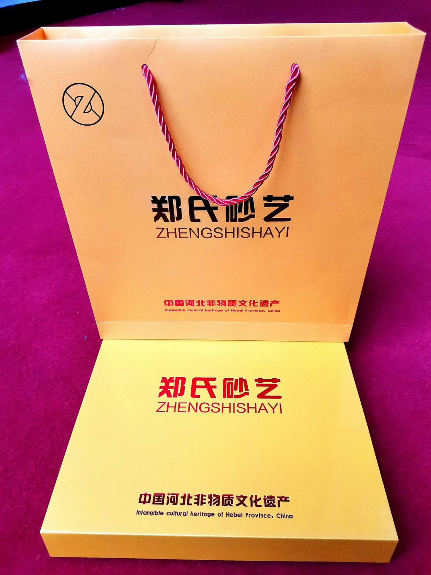 鄭氏砂藝(畫)由晚清時代的鄭克祥始創,至第五代傳承人鄭鐵軍已有160多年歷史。制作取材低碳環保,以精選的天然彩砂和優質金銀絲為主要原料,工藝上采用了鄭氏砂藝傳統的掐絲、點藍等手法,畫面鮮艷靚麗、光澤剔透,主題鮮明,且永不褪色,具有欣賞收藏雙重價值。