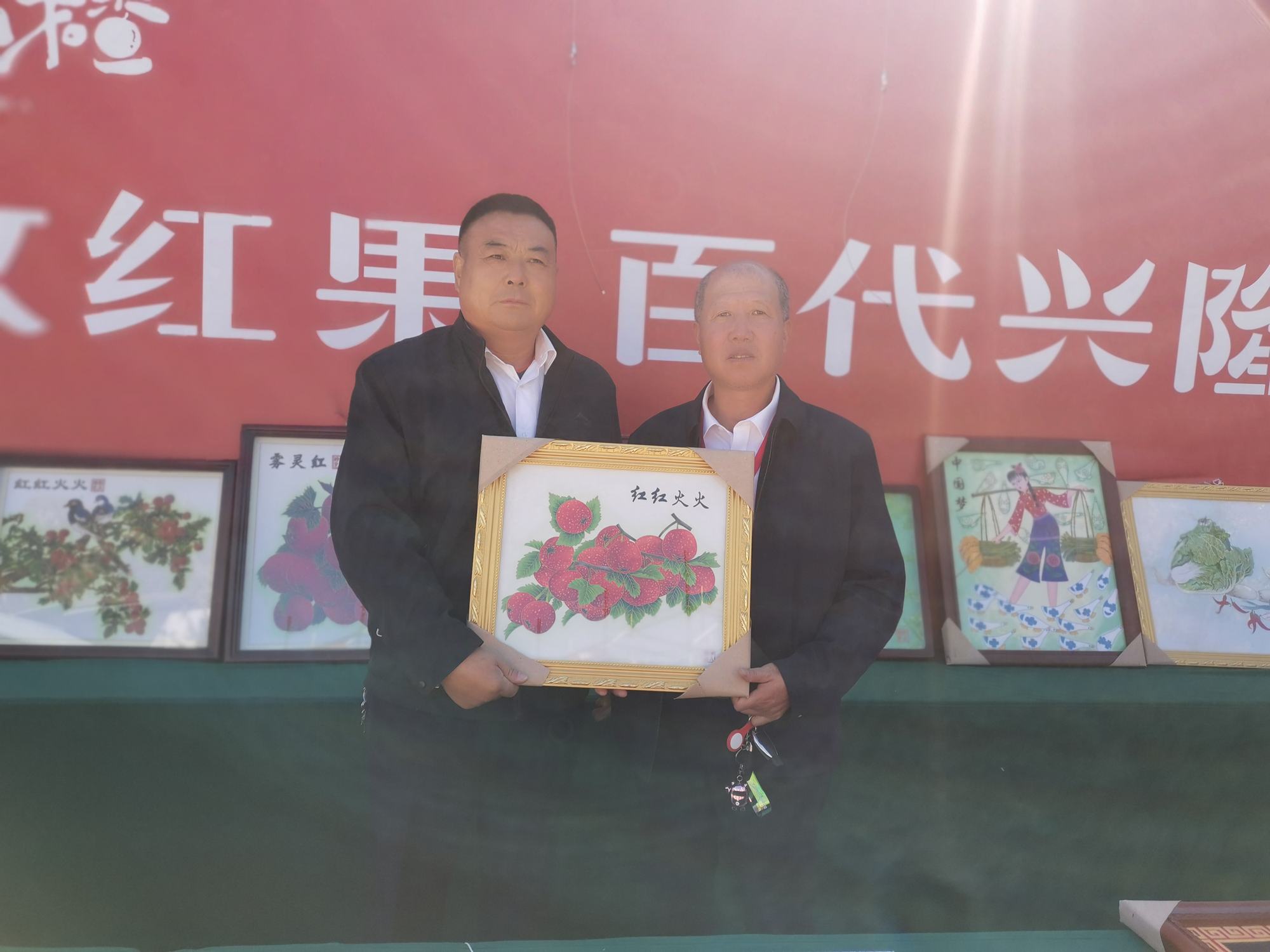 在此次山楂節(jié)上,鄭氏砂藝展出了《興隆山楂節(jié)》、《霧靈紅》、《山里紅》、《興隆山楂》等數(shù)十幅非遺砂畫作品,用獨特的藝術(shù)方式展現(xiàn)了我縣山楂豐收的盛況,為興隆縣第五屆山楂節(jié)獻上了一份另類的藝術(shù)“厚禮”。市委副書記郭旭濤等一行領(lǐng)導(dǎo)相繼駐足觀看砂畫作品,并同鄭氏砂藝董事長鄭鐵軍進行親切交談,郭旭濤書記對鄭氏砂藝非遺文化傳承和保護工作給予了充分肯定和贊揚。鄭氏砂藝的展出既體現(xiàn)了承德對提升“非遺”文化軟實力的重視,又反映出承德地區(qū)民族文化自信的提升,砂藝人也會用藝術(shù)講好承德故事,傳播好承德聲音。