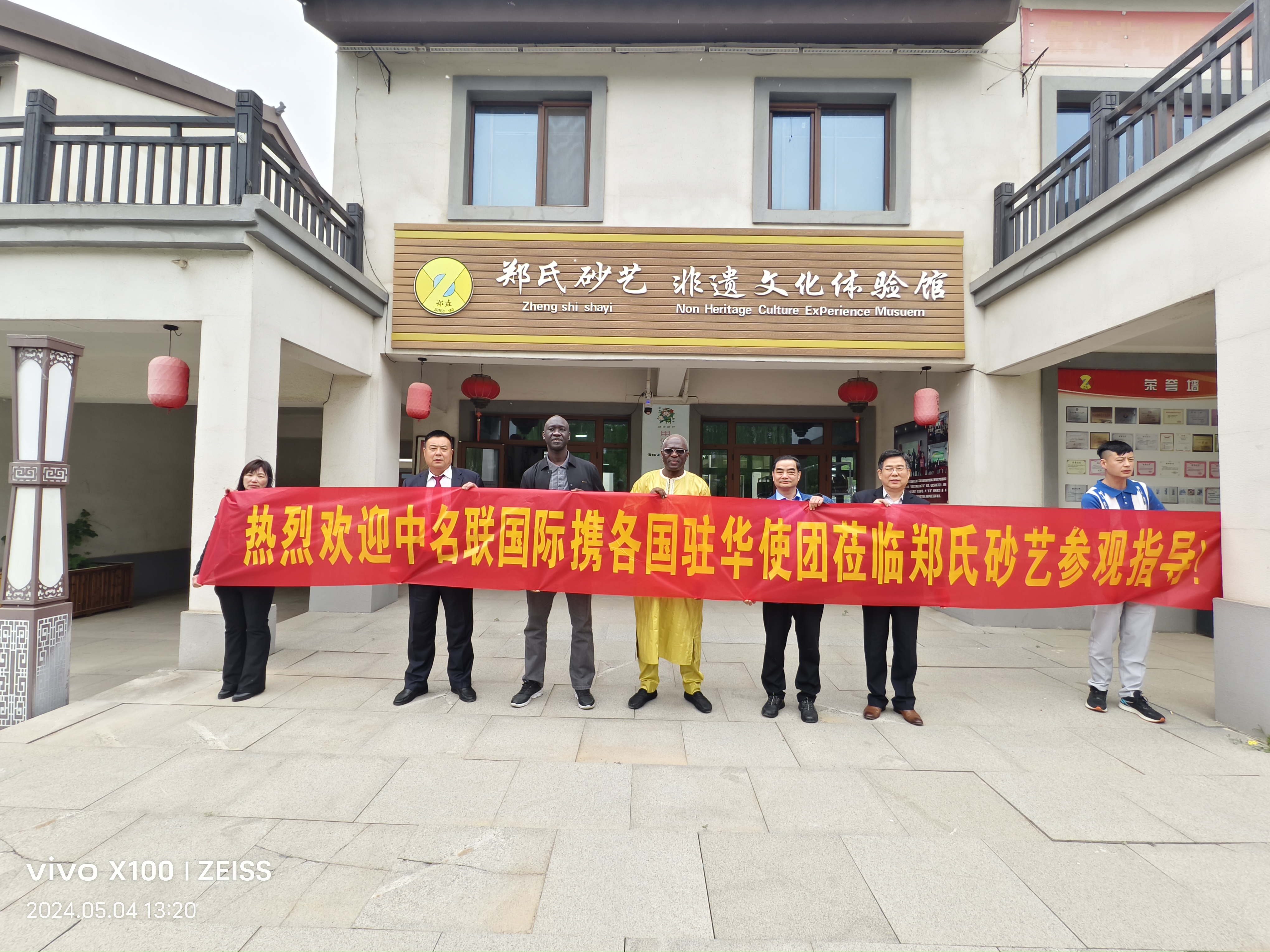 又是一年春暖花開時,值此“五一”勞動節之際,應興隆縣鄭氏砂藝文化有限公司(以下簡稱鄭氏砂藝)邀請,由中名聯國際引薦,5月5日上午,科特迪瓦共和國駐華大使館國防武官阿達馬·科內(空軍準將)、塞內加爾共和國駐中國大使館副官阿壩·瓦德上校蒞臨鄭氏砂藝進行參觀考察。訪問人員在中名聯集團董事長戴本領和趙蘋女士、邯鄲市華冶工貿有限公司黨委書記、董事長張書明、鄭氏砂藝董事長鄭鐵軍等人員的陪同下參觀了后苗圃“鄭氏砂藝”非遺展館和青松嶺水鎮“鄭氏砂藝”非遺博物館。此次參觀活動不僅讓外國友人領略了“鄭氏砂藝”的深厚文化底蘊,也促進了中外文化的民間交流與融合。