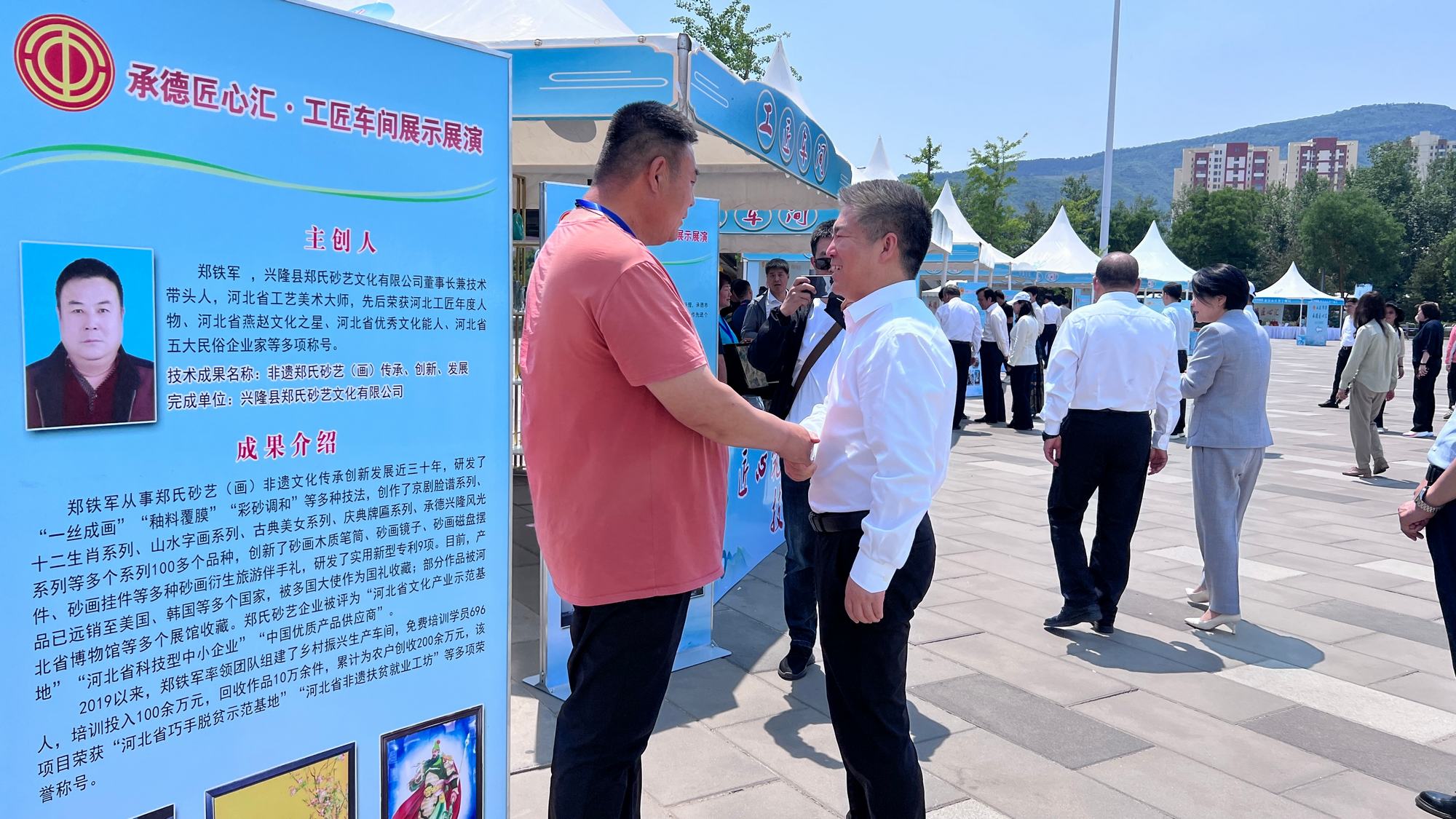 為向全國職工展示我省、我市工匠代表典型創(chuàng)新成果、精湛的操作技能,非遺傳承以及智慧文創(chuàng)的文化魅力,同時在奧體中心還舉辦了“承德匠心匯——工匠•市集”展示展演活動,鄭氏砂藝(畫)等二十余個承德非遺文化項目的勞模工匠代表匯聚一堂,向全國職工和當地市民展示了自身的高超技藝,展現了承德工匠們堅守執(zhí)著、精益求精、專業(yè)專注、追求極致和一絲不茍的工匠精神。