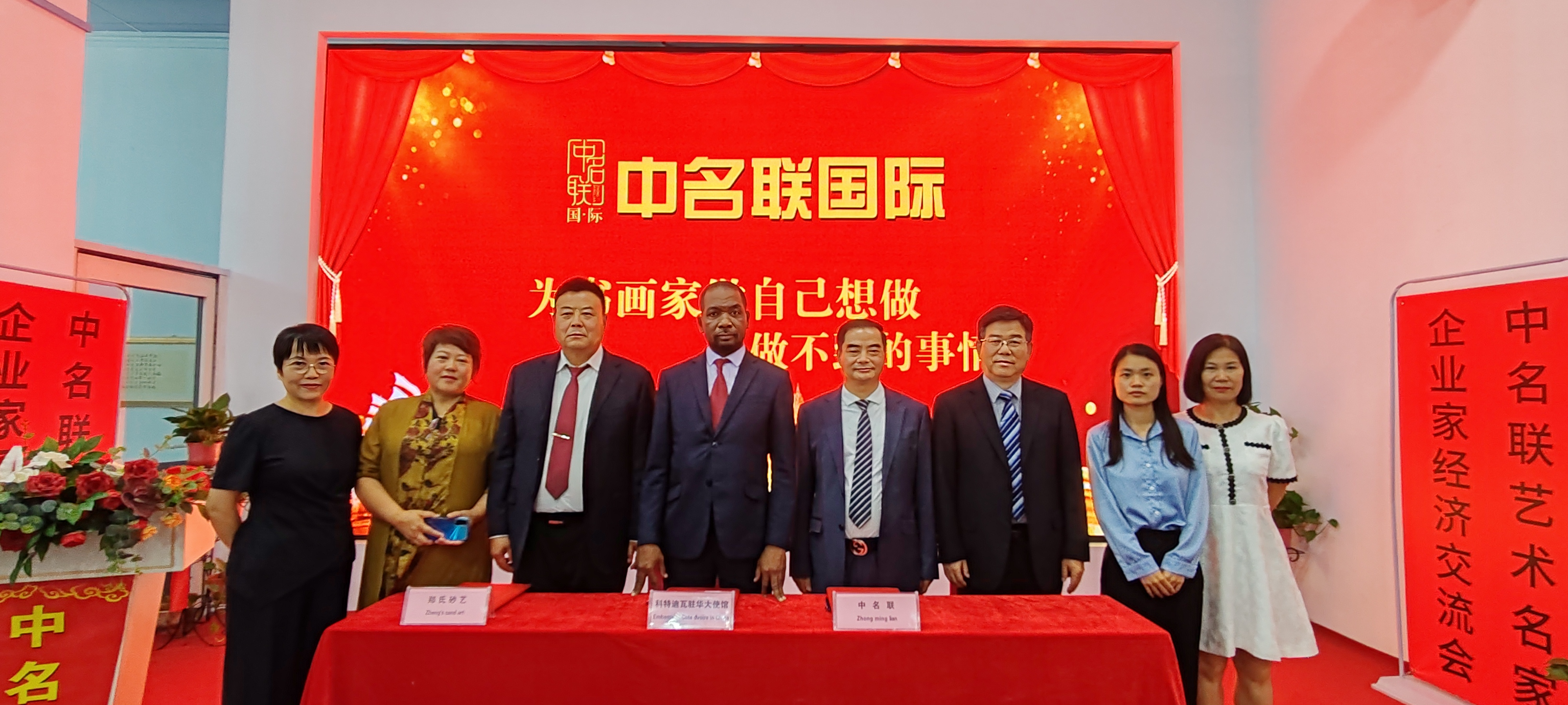 中名聯董事長戴本領先生對三方達成的合作表示祝賀,對中名聯簽約國禮藝術家鄭鐵軍及其企業與科特迪瓦的貿易合作和發展前景表示祝賀,他表示,三方合作貿易簽訂不但為中非文化交流發展奠定了基礎,也為中名聯簽約的萬名藝術家和企業家做了表率,多年來,中名聯矢志不渝地為中國藝術家搭建文化經濟交流平臺,并同世界各國駐華使館一道,甘做中國文化國際傳播橋梁。