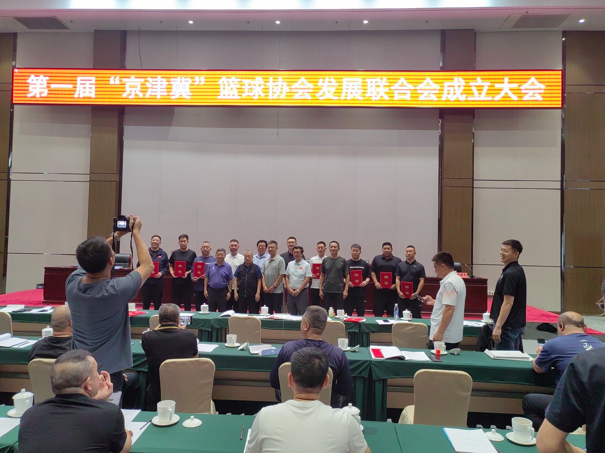 2024年9月12日上午,第一屆“京津冀”籃球協(xié)會(huì)發(fā)展聯(lián)合會(huì)成立大會(huì)于在北京市懷柔區(qū)雁棲湖勝利召開,參加會(huì)議的有北京市通州區(qū)籃球運(yùn)動(dòng)協(xié)會(huì)主席曹國(guó)虎、北京市懷柔區(qū)籃球協(xié)會(huì)主席李鳳亮、北京市大興區(qū)籃球協(xié)會(huì)主席張海忠、北京市平谷區(qū)籃球運(yùn)動(dòng)協(xié)會(huì)主席張亞東、北京市門頭溝區(qū)籃球協(xié)會(huì)主席王會(huì)、北京市密云區(qū)籃球運(yùn)動(dòng)協(xié)會(huì)主席王懷平、北京市西城區(qū)籃球?qū)I(yè)委員會(huì)關(guān)雨、北京市東城區(qū)籃球運(yùn)動(dòng)協(xié)會(huì)主席董瑋、北京市朝陽區(qū)籃球運(yùn)動(dòng)協(xié)會(huì)主席劉杰、北京市房山區(qū)籃球運(yùn)動(dòng)協(xié)會(huì)主席馬德亮、北京市懷柔區(qū)神韻訓(xùn)練基地王潘磊、天津市武清區(qū)籃球協(xié)會(huì)主席楊瑞偉、天津市西青區(qū)籃球運(yùn)動(dòng)協(xié)會(huì)主席趙犀、天津市東麗區(qū)籃球協(xié)會(huì)主席徐海泉、天津?yàn)I海新區(qū)籃球協(xié)會(huì)主席趙國(guó)萍、天津市北辰區(qū)籃球運(yùn)動(dòng)協(xié)會(huì)主席賈蔚亞、天津市寶坻區(qū)籃球協(xié)會(huì)主席王懷瑤、天津市薊州區(qū)籃球協(xié)會(huì)主席蘇昌亮、天津市寧河區(qū)籃球協(xié)會(huì)主席馬立勇、河北省廊坊市籃球運(yùn)動(dòng)協(xié)會(huì)主席裴羅江、河北省廊坊市香河縣籃球協(xié)會(huì)主席劉棟、河北省廊坊市三河市籃球協(xié)會(huì)主席孫明明、河北省廊坊市大廠回族自治縣籃球協(xié)會(huì)主席張金凱、河北省廊坊市文安縣籃球協(xié)會(huì)主席相東、河北省廊坊市霸州市籃球協(xié)會(huì)主席閆寶光、河北省廊坊市固安縣籃球協(xié)會(huì)主席楊衛(wèi)華、河北省承德市興隆縣籃球協(xié)會(huì)主席鄭鐵軍、副主席李柏林、河北省滄州市任丘市籃球協(xié)會(huì)主席賈建松、河北省滄州市籃球協(xié)會(huì)主席張國(guó)強(qiáng)、河北豐寧滿族自治縣籃球協(xié)會(huì)主席何曉川等相關(guān)領(lǐng)導(dǎo)。